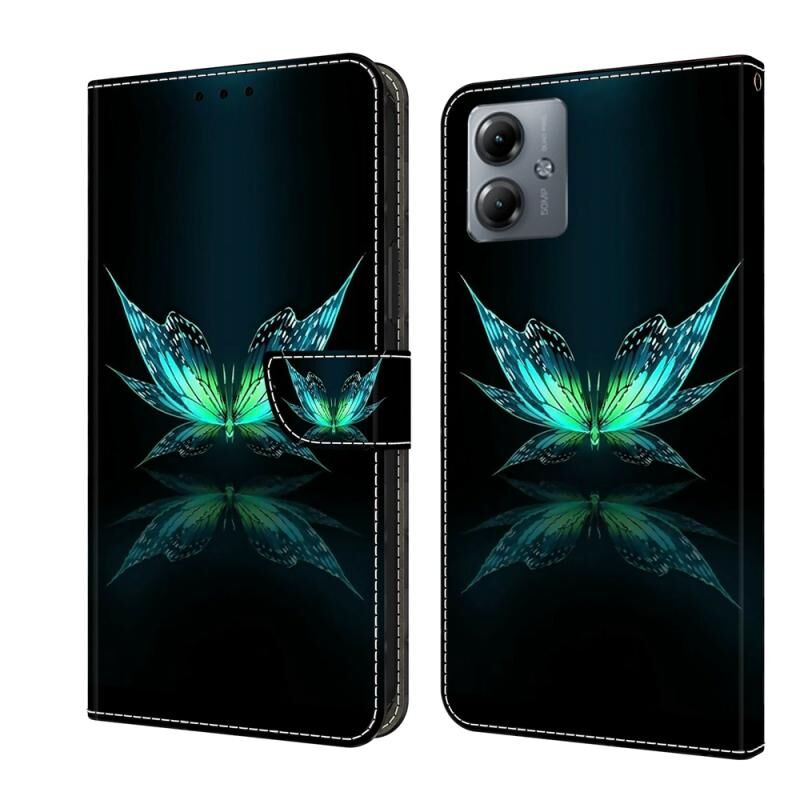 Θήκη κινητού τηλεφώνου από δέρμα, αντικραδασμική, προστατευτική, για Motorola Moto G14 Crystal 3D (Αντανάκλαση Πεταλούδας)