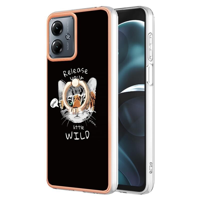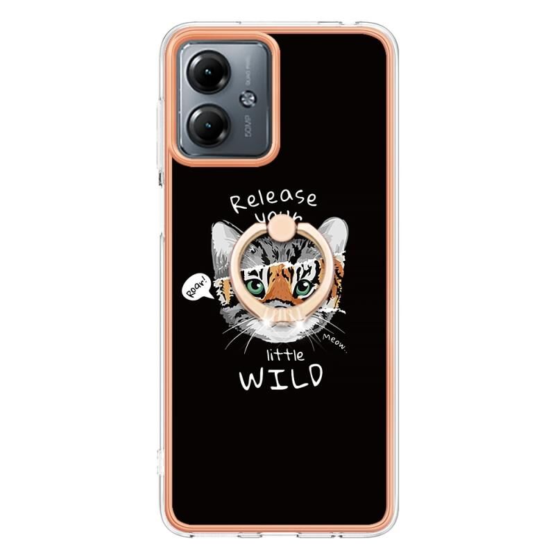 Θήκη τηλεφώνου με δακτύλιο στήριξης για Motorola Moto G14, με ηλεκτρολυτική επιμετάλλωση και διπλής όψης IMD (Φυσική Ανάπτυξη)