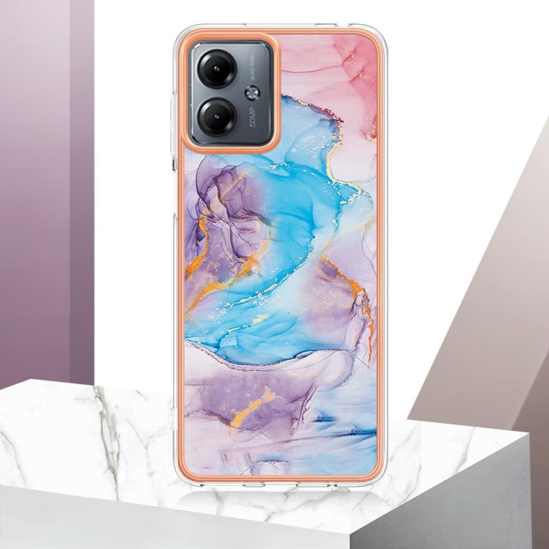 For Motorola Moto G14 Electroplating IMD TPU Phone Case(Blue Marble)