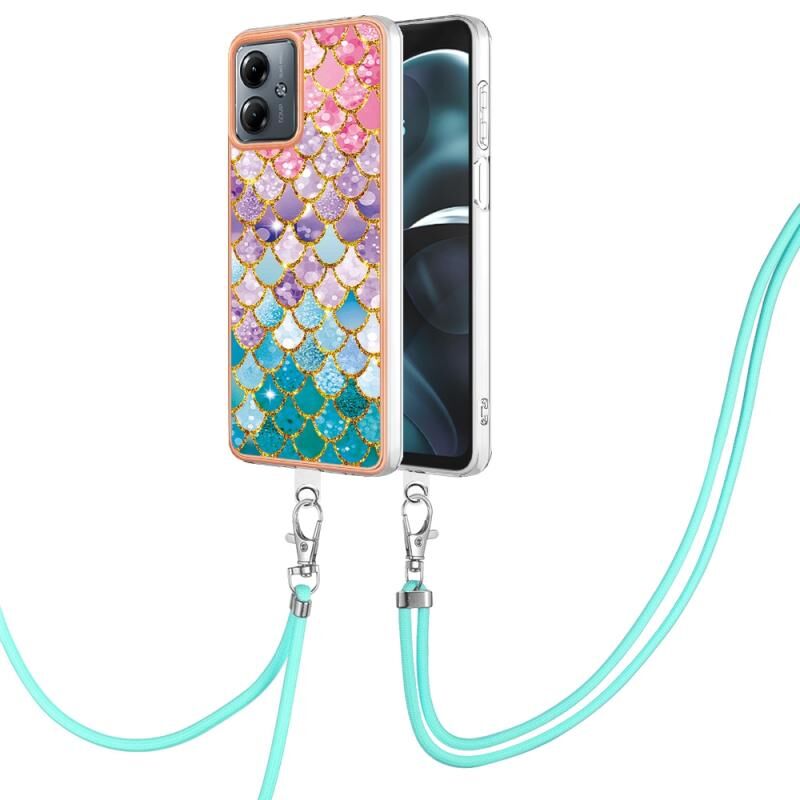 Θήκη τηλεφώνου για Motorola Moto G14 Επιμετάλλωση IMD TPU με κορδόνι (Πολύχρωμες Λέπια)
