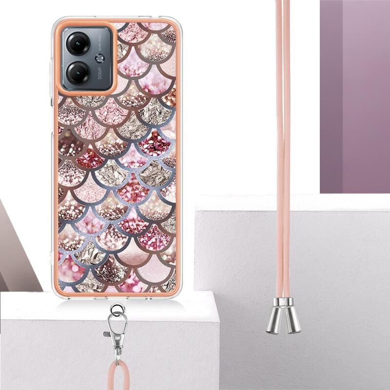 Θήκη κινητού τηλεφώνου για Motorola Moto G14 με ηλεκτρολυτική επιμετάλλωση IMD TPU με κορδόνι (Ροζ Λέπια)