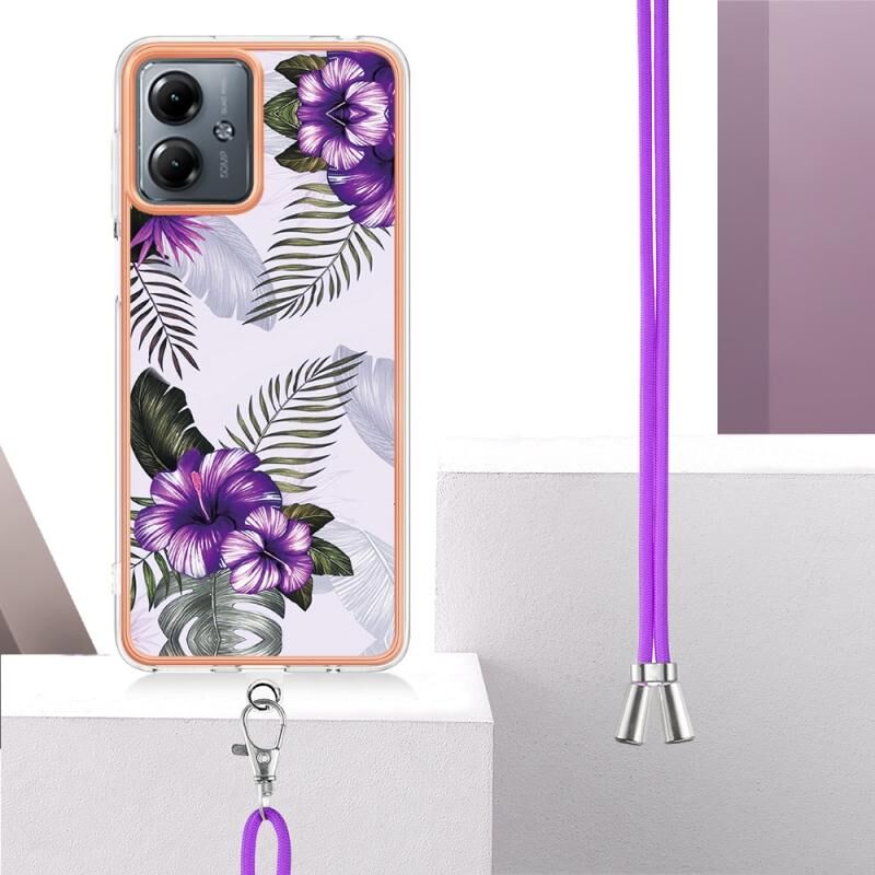 Θήκη κινητού τηλεφώνου για Motorola Moto G14 με ηλεκτρολυτική επιμετάλλωση IMD TPU με κορδόνι (Λευκό Μάρμαρο)