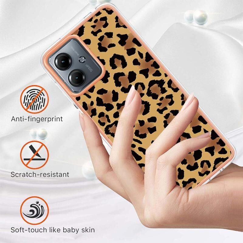 Θήκη τηλεφώνου για Motorola Moto G14 Επιμετάλλωση, Μάρμαρο, Διπλής Όψης IMD (Εκτύπωση Λεοπάρδαλης)