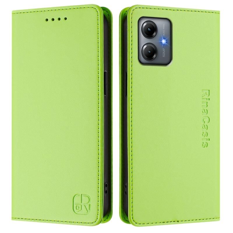Θήκη τηλεφώνου δερμάτινη με μαγνητική απορρόφηση και διπλή πτύχωση για Motorola Moto G14 / G54 Βραζιλία / ΕΕ RC01 (Μέντας Πράσινο)