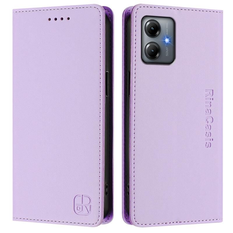 Θήκη τηλεφώνου δερμάτινη με μαγνητική απορρόφηση και διπλή πτύχωση για Motorola Moto G14 / G54 Βραζιλία / ΕΕ RC01 (Μέντας Πράσινο)