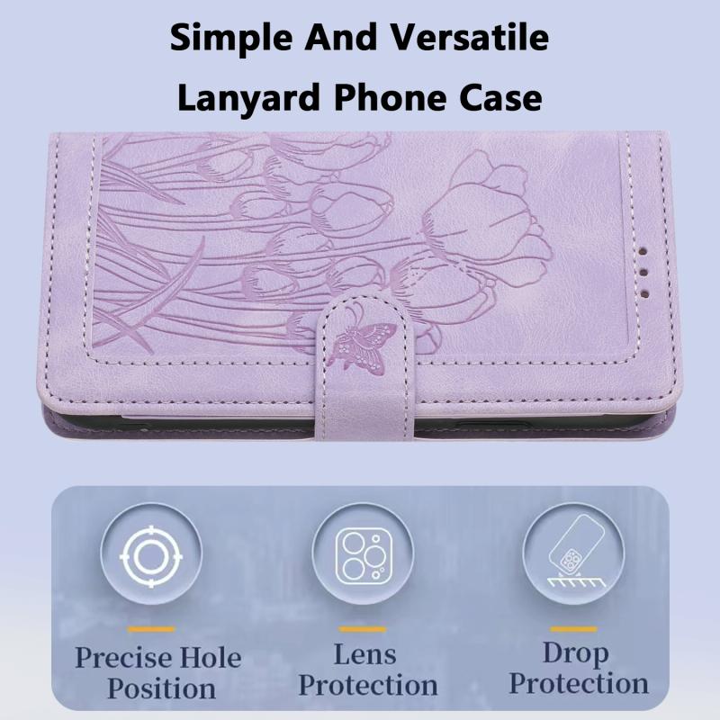 For Motorola Moto G14 / G54 Tulips Embossed Leather Phone Case with Lanyard(Purple)