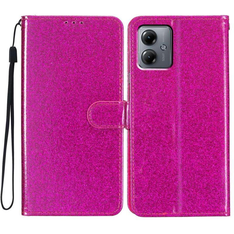 For Motorola Moto G14 Glitter Powder Flip Leather Phone Case(Rose Red)