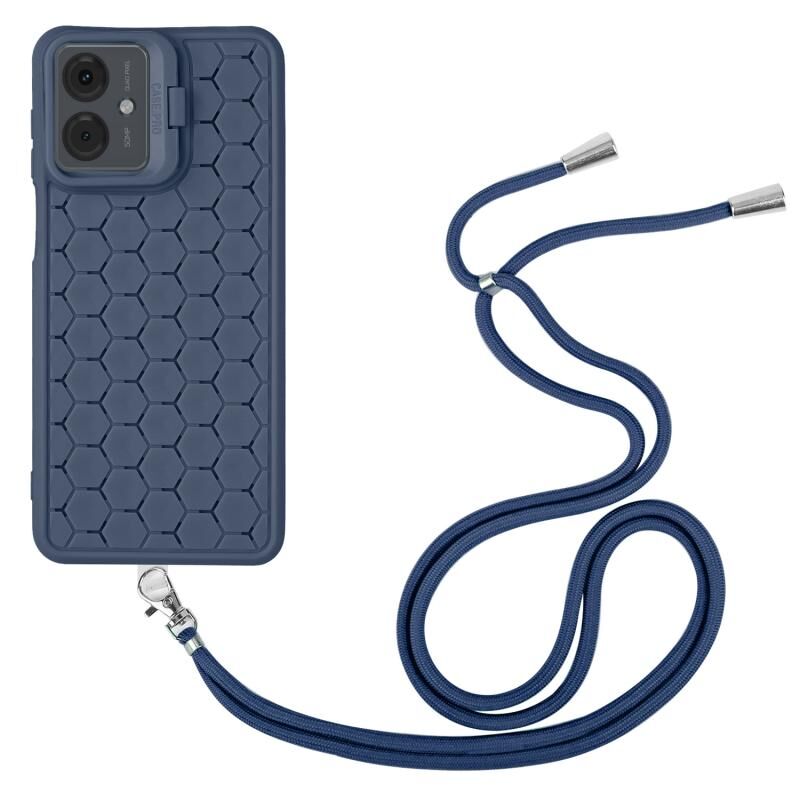 Για Motorola Moto G14 Honeycomb Ακτινοβολία κάτοχος TPU τηλέφωνο υπόθεση με κορδόνι (Μπλε)