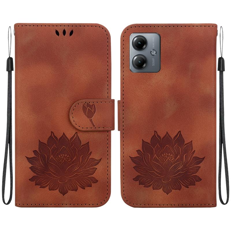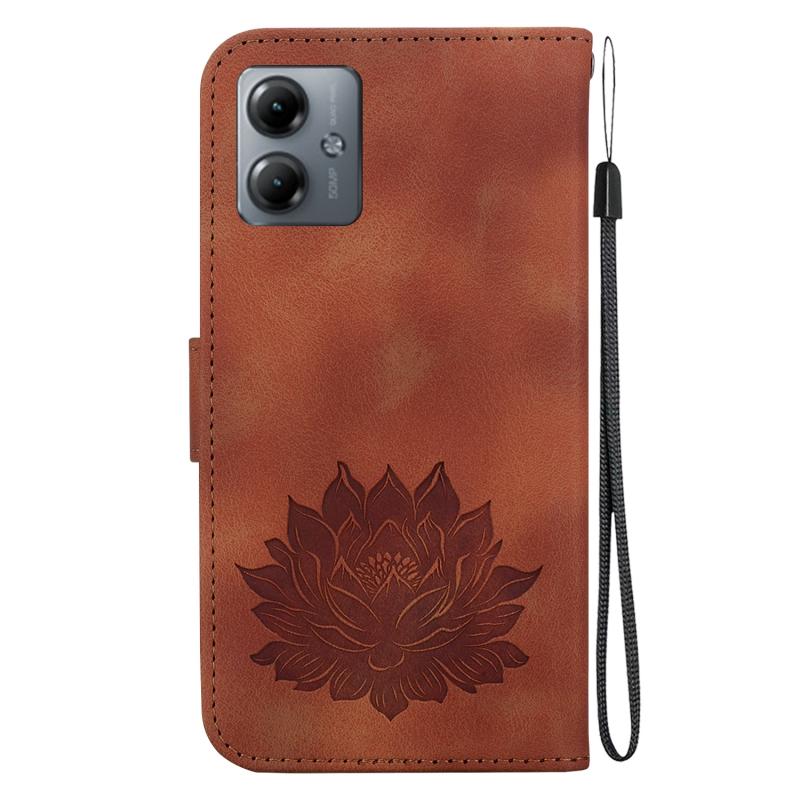 For Motorola Moto G14 Lotus Embossed Leather Phone Case(Brown)