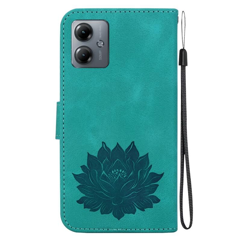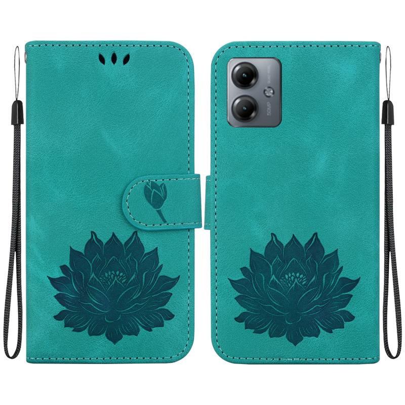 For Motorola Moto G14 Lotus Embossed Leather Phone Case(Green)