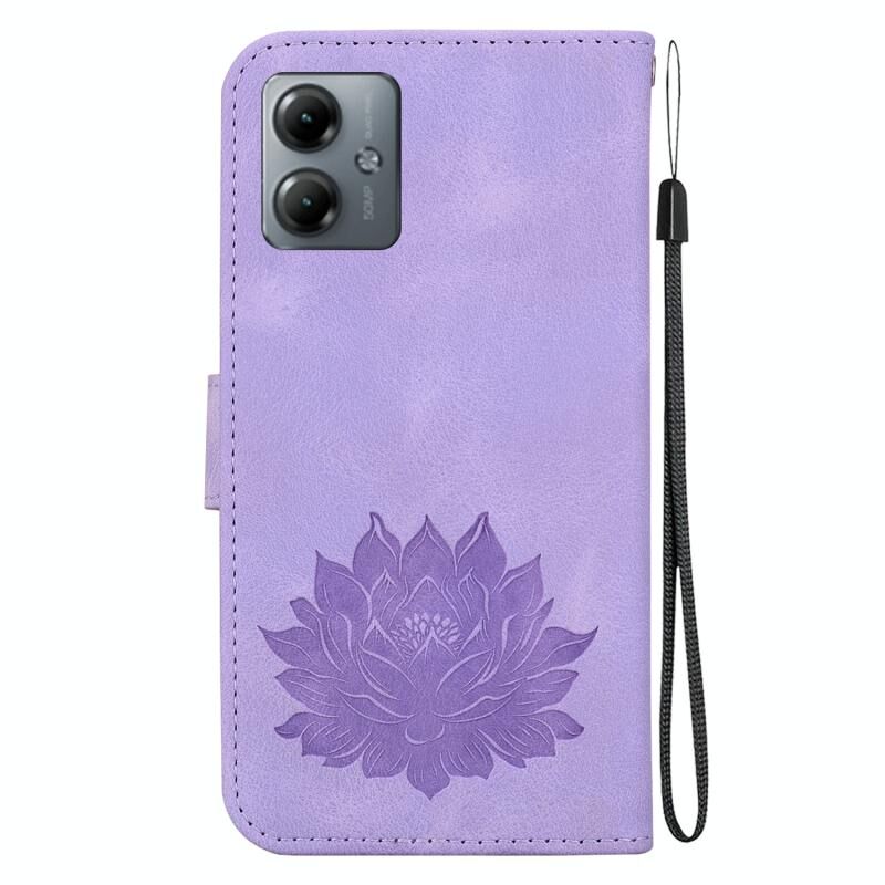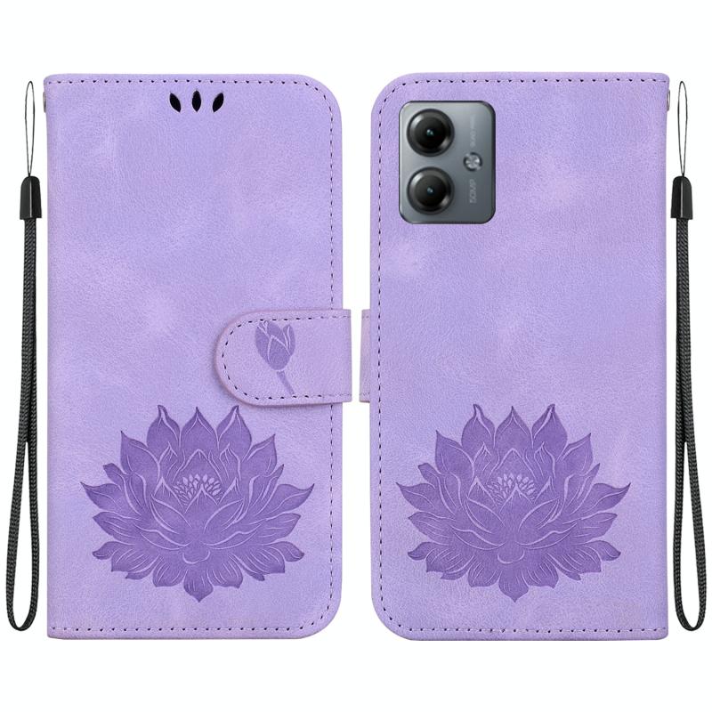 For Motorola Moto G14 Lotus Embossed Leather Phone Case(Purple)
