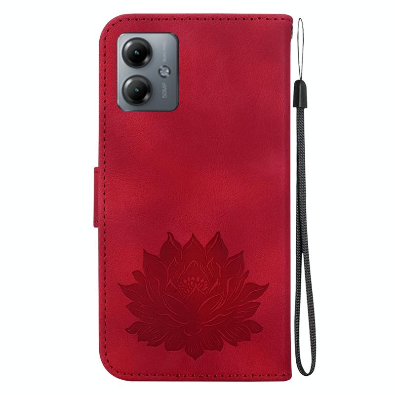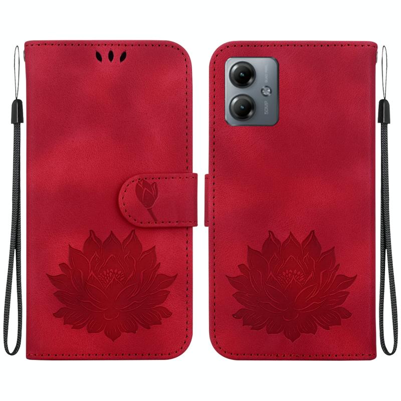 For Motorola Moto G14 Lotus Embossed Leather Phone Case(Red)