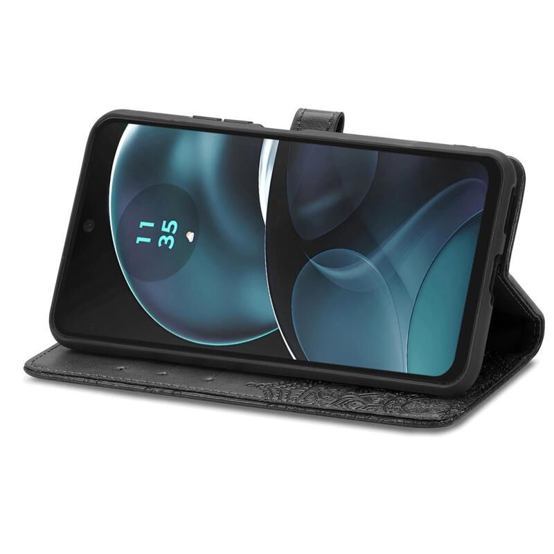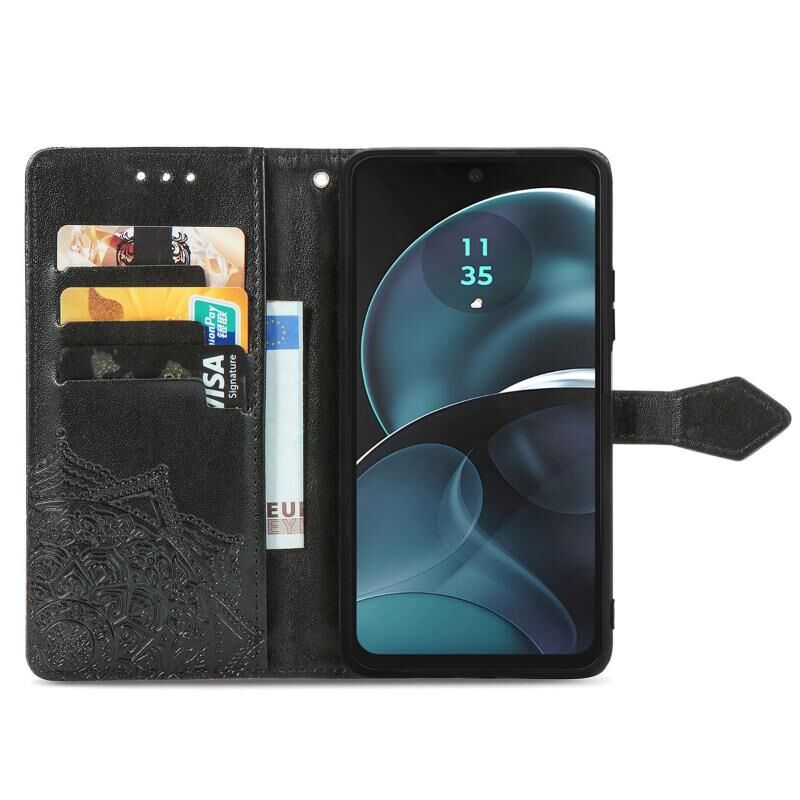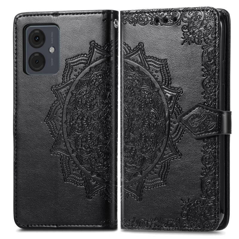 Θήκη τηλεφώνου δερμάτινη ανάγλυφη με λουλούδια Mandala για Motorola Moto G14 (Χρυσό Ρόδι)