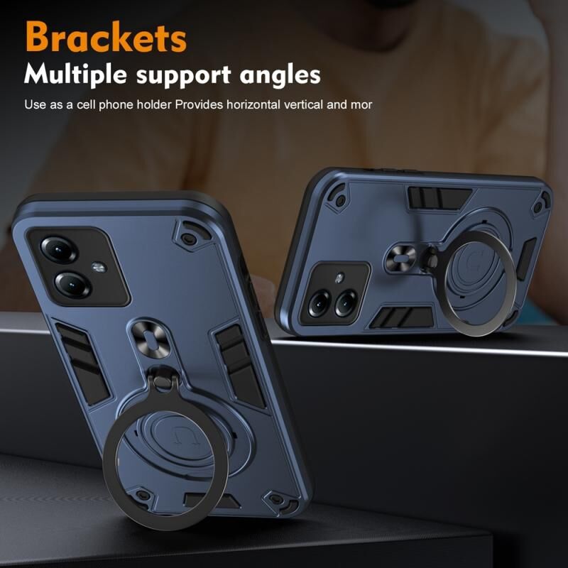 Για Motorola Moto G14 Μεταλλικό δαχτυλίδι 360 μοιρών περιστρεφόμενη θήκη τηλεφώνου PC Hybrid TPU (Navy Blue)