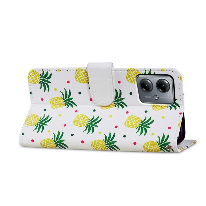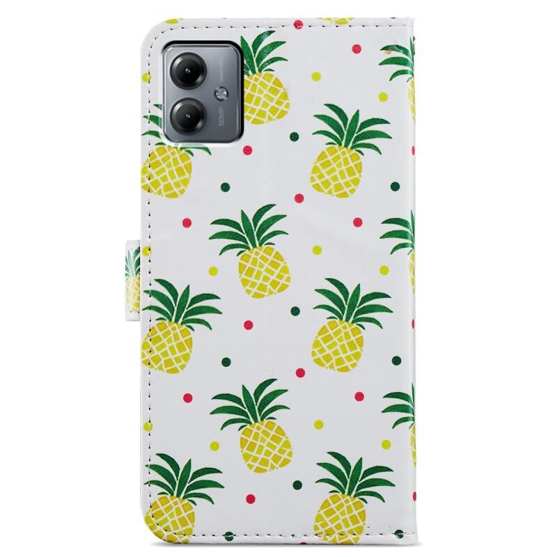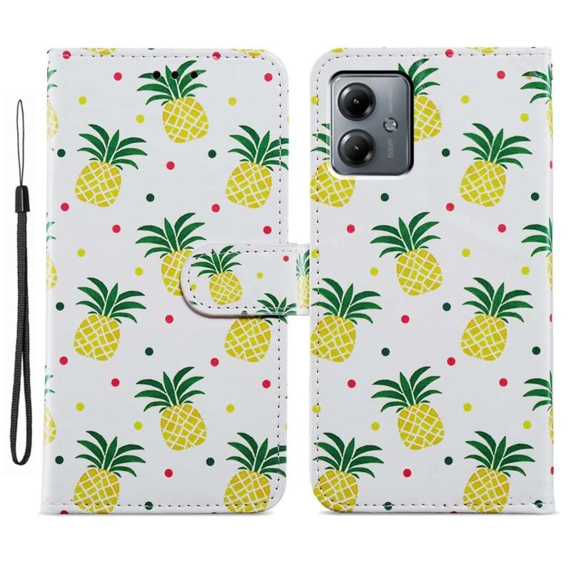 Θήκη τηλεφώνου δερμάτινη, οριζόντια αναδιπλούμενη με σχέδιο (Ανανάς) για Motorola Moto G14.