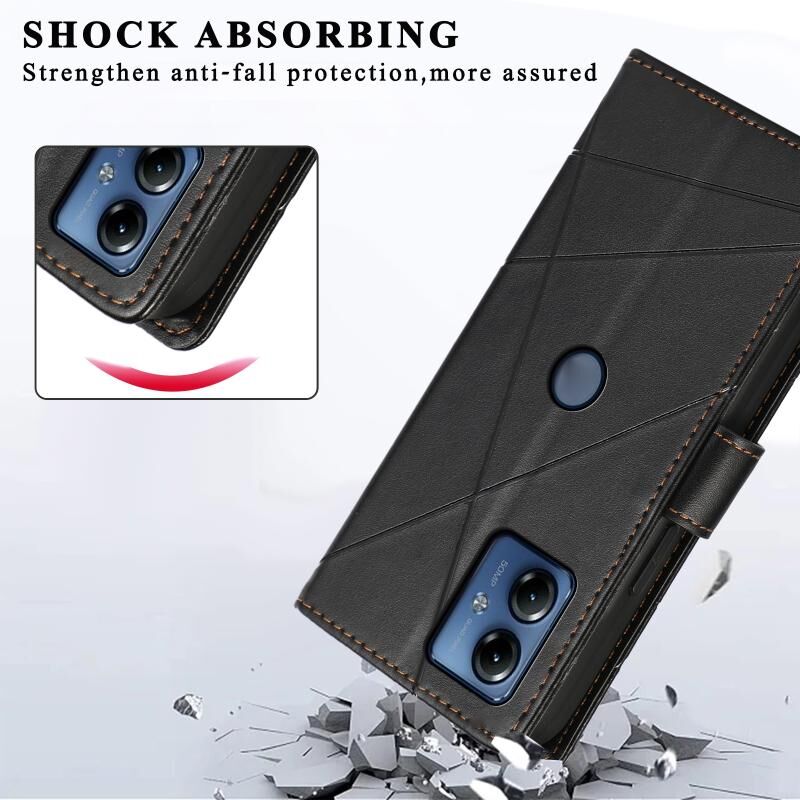Θήκη κινητού τηλεφώνου Motorola Moto G14 PU με ανάγλυφη υφή γνήσιου δέρματος (Μπλε)