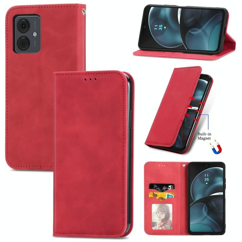 Για Motorola Moto G14 Retro Skin Feel μαγνητική θήκη τηλεφώνου με δερμάτινο κάλυμμα (κόκκινο)