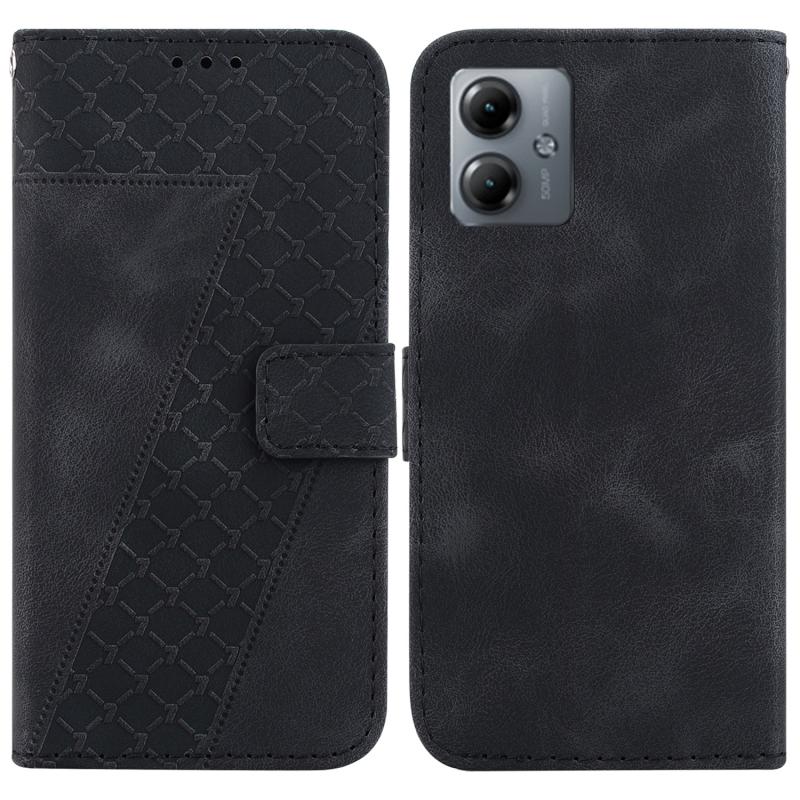 Θήκη τηλεφώνου δερμάτινη ανάγλυφη σε σχήμα επτά για Motorola Moto G14 (Μαύρο)