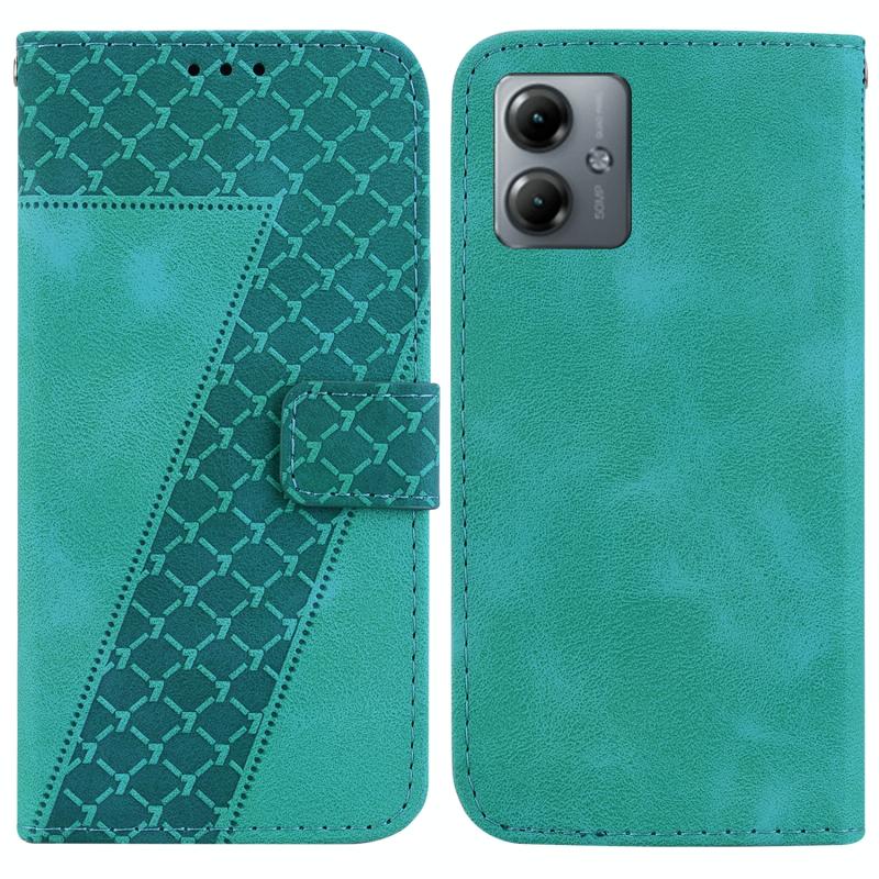 Θήκη τηλεφώνου δερμάτινη ανάγλυφη σε σχήμα επτά για Motorola Moto G14 (πράσινο)