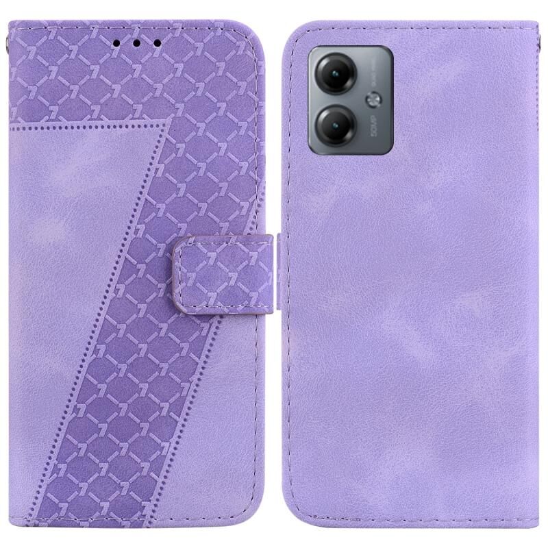 Θήκη τηλεφώνου δερμάτινη ανάγλυφη σε σχήμα επτά για Motorola Moto G14 (Μωβ)