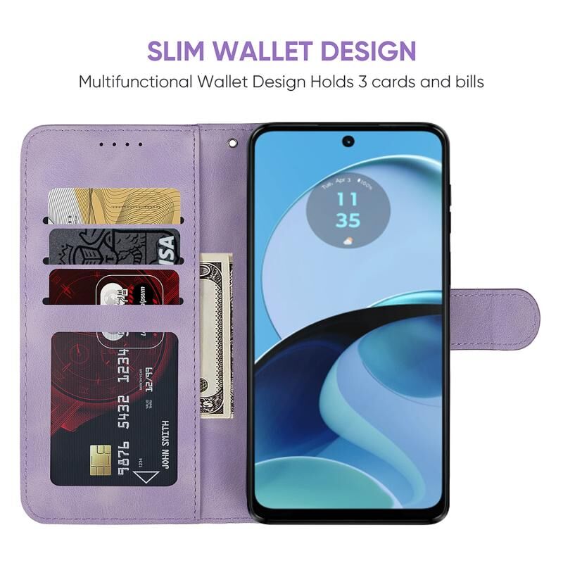Για Motorola Moto G14 Skin Feel Γεωμετρικές γραμμές δερμάτινη θήκη τηλεφώνου (μωβ)