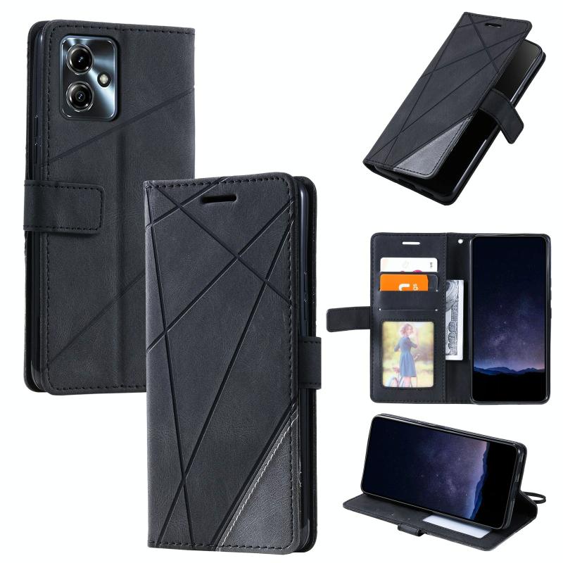 For Motorola Moto G14 Skin Feel Splicing Leather Phone Case(Black)