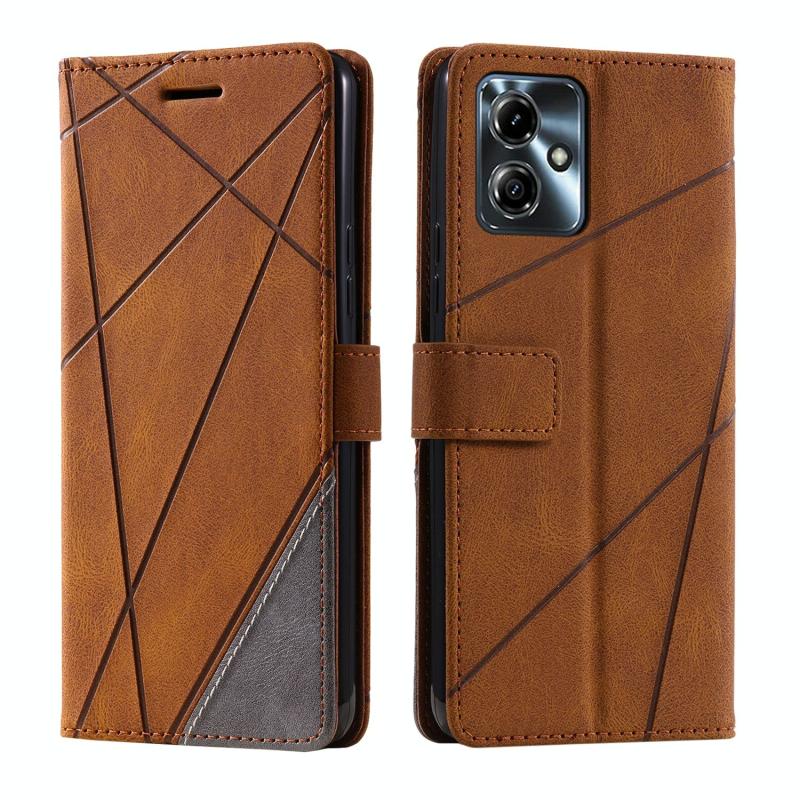 For Motorola Moto G14 Skin Feel Splicing Leather Phone Case(Brown)