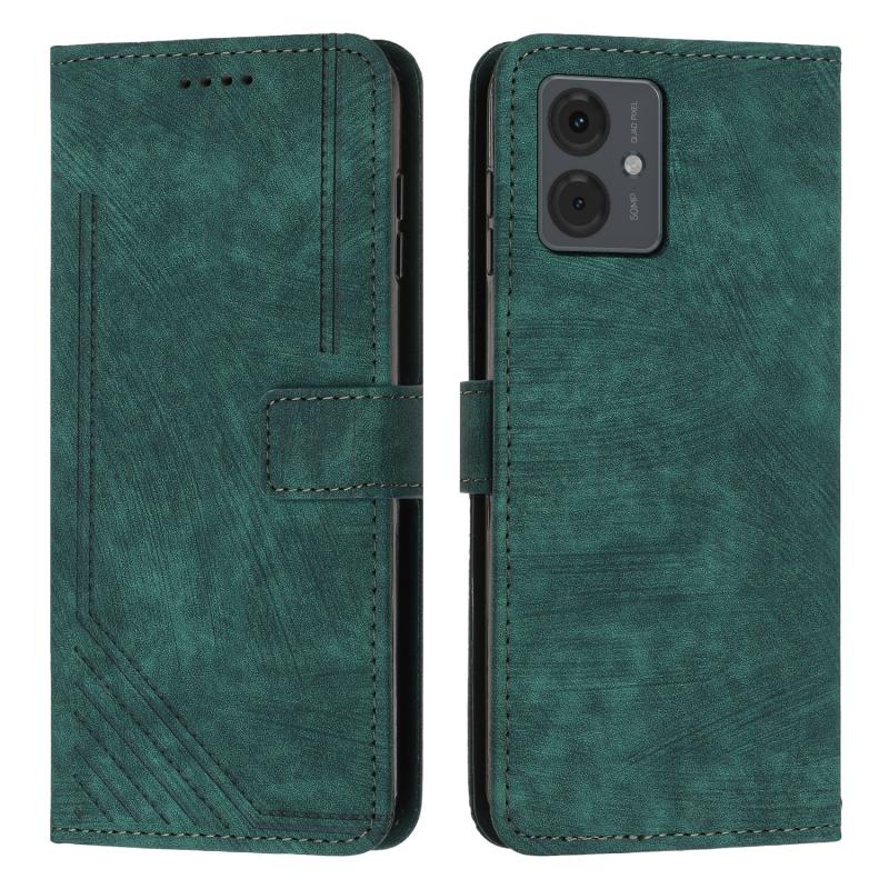 For Motorola Moto G14 Skin Feel Stripe Pattern Leather Phone Case with Lanyard(Green)