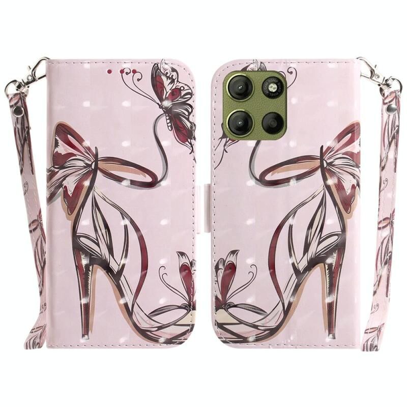 Θήκη τηλεφώνου από δέρμα με ανάγλυφο σχέδιο 3D για Motorola Moto G15 (Πεταλούδα με ψηλοτάκουνα)