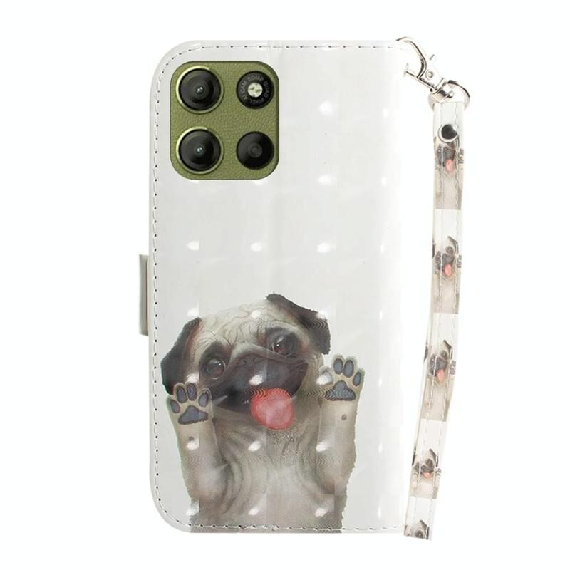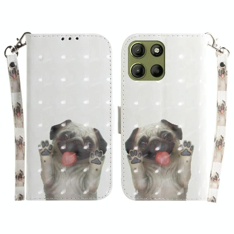 Θήκη τηλεφώνου από δέρμα με ανάγλυφο σχέδιο 3D και πολύχρωμο φλιπ για Motorola Moto G15 (Pug)