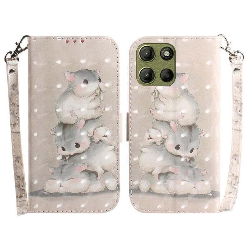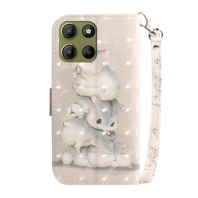 Θήκη τηλεφώνου από δέρμα με ανάγλυφο σχέδιο και 3D χρώματα για Motorola Moto G15 (Σκιουράκια)