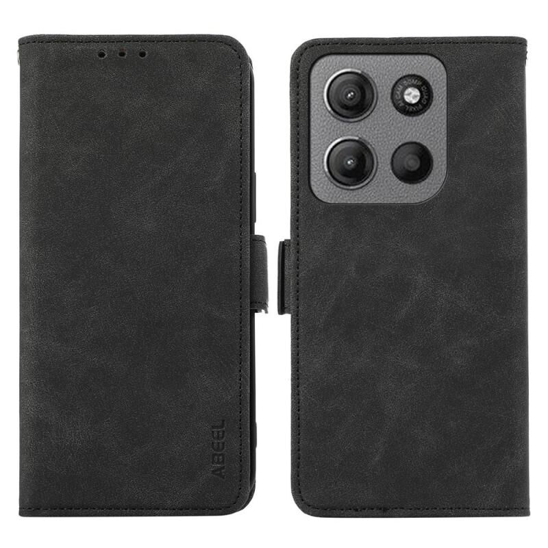 Θήκη τηλεφώνου δερμάτινη με μαγνητικό κλείσιμο και προστασία RFID για Motorola Moto G15 4G / G05 ABEEL (Ροζ) με ματ φινίρισμα. (Μαύρο)