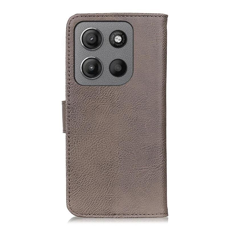 Θήκη τηλεφώνου από δέρμα με υφή δέρματος αγελάδας KHAZNEH για Motorola Moto G15 4G / G05 (Χακί)