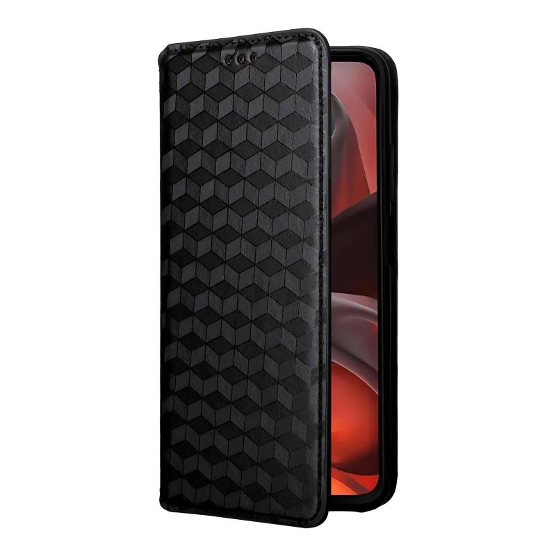 For Motorola Moto G15 4G / G15 Power 4G Cubic Grid Texture Flip Leather Phone Case(Black)