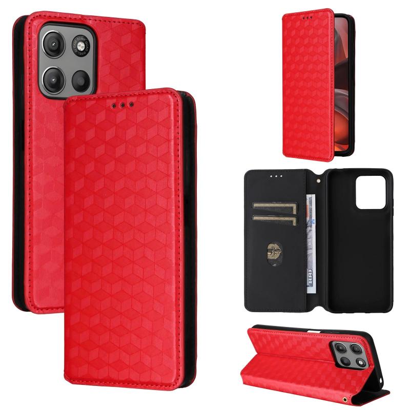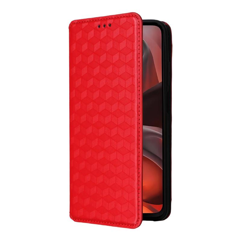 For Motorola Moto G15 4G / G15 Power 4G Cubic Grid Texture Flip Leather Phone Case(Red)