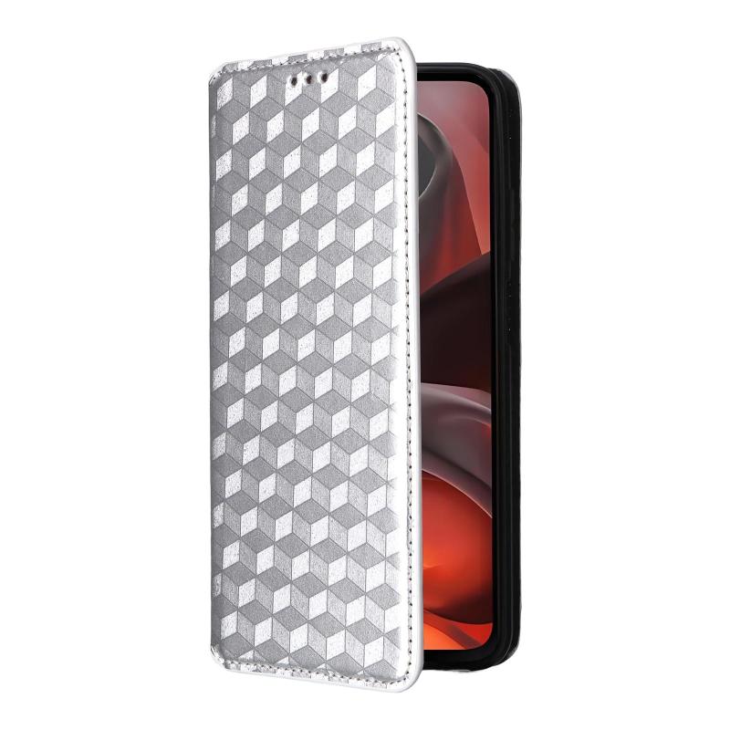 For Motorola Moto G15 4G / G15 Power 4G Cubic Grid Texture Flip Leather Phone Case(Silver)
