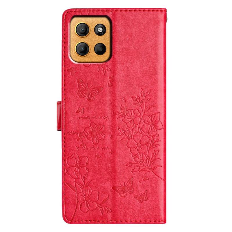 For Motorola Moto G15 Butterflies and Flowers Leather Phone Case(Red)