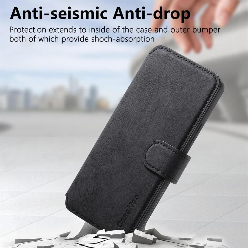 Θήκη για Motorola Moto G15 CaseNeo MagSafe RFID Αντικλεπτική Ρετρό Δερμάτινη Θήκη Τηλεφώνου (Μαύρο) (CaseNeo)