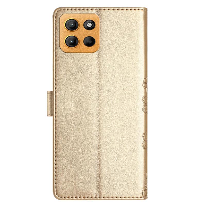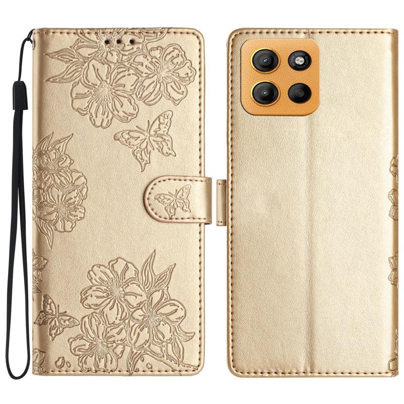 For Motorola Moto G15 Cherry Blossom Butterfly Skin Feel Embossed PU Phone Case(Gold)