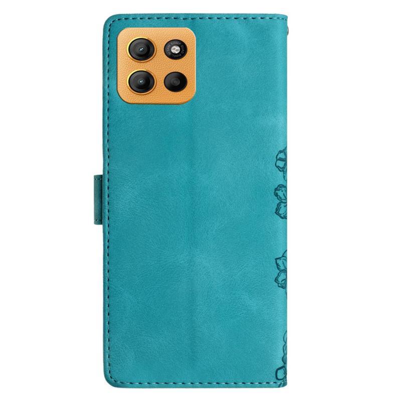 For Motorola Moto G15 Cherry Blossom Butterfly Skin Feel Embossed PU Phone Case(Green)