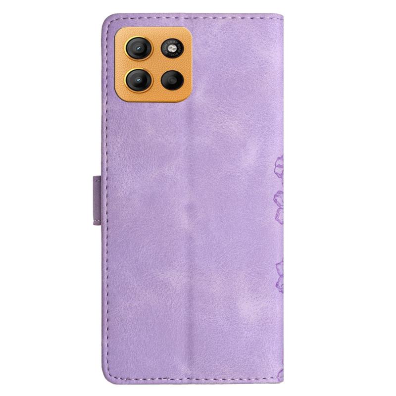 For Motorola Moto G15 Cherry Blossom Butterfly Skin Feel Embossed PU Phone Case(Purple)