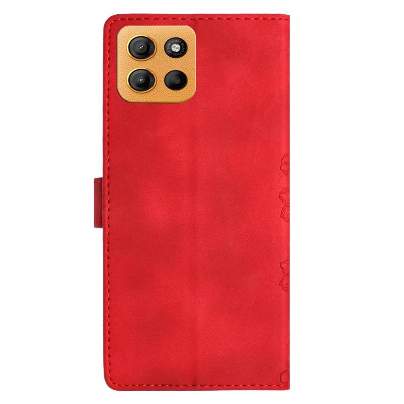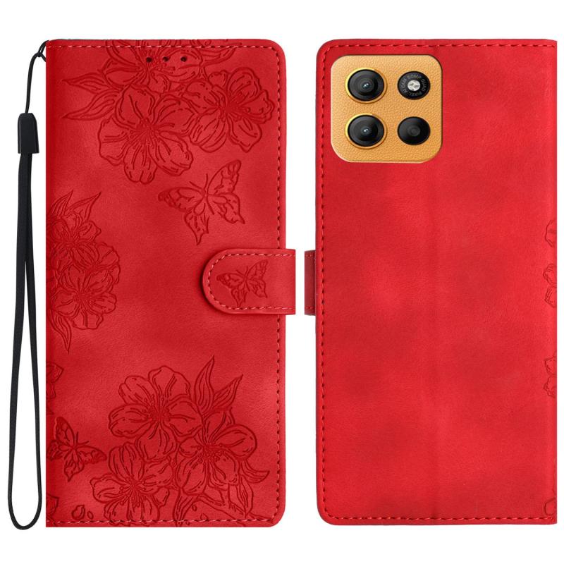 For Motorola Moto G15 Cherry Blossom Butterfly Skin Feel Embossed PU Phone Case(Red)