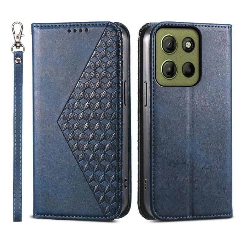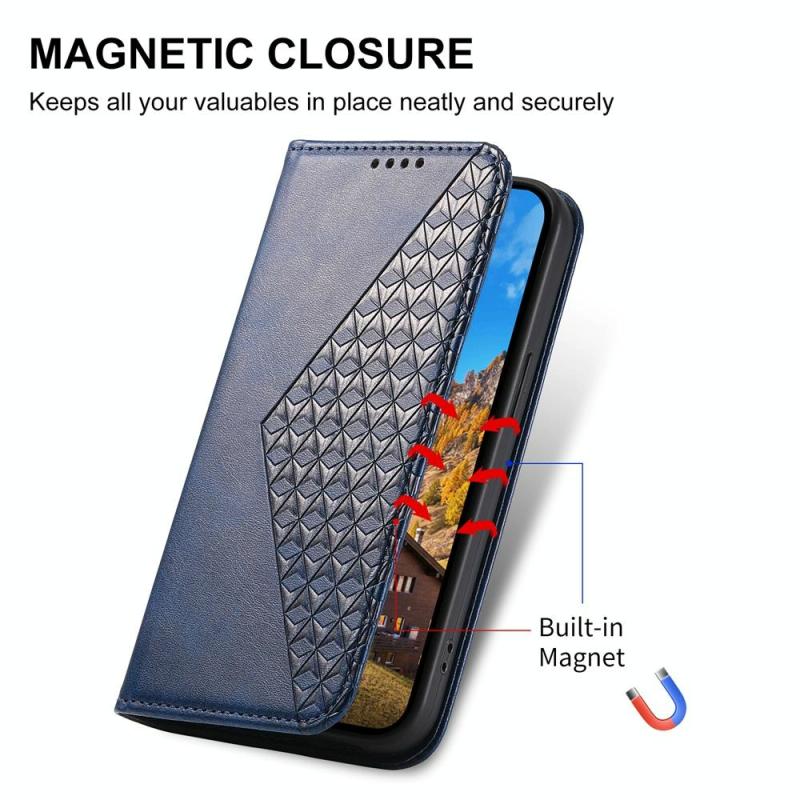For Motorola Moto G15 Cubic Grid Calf Texture Magnetic Leather Phone Case(Blue)