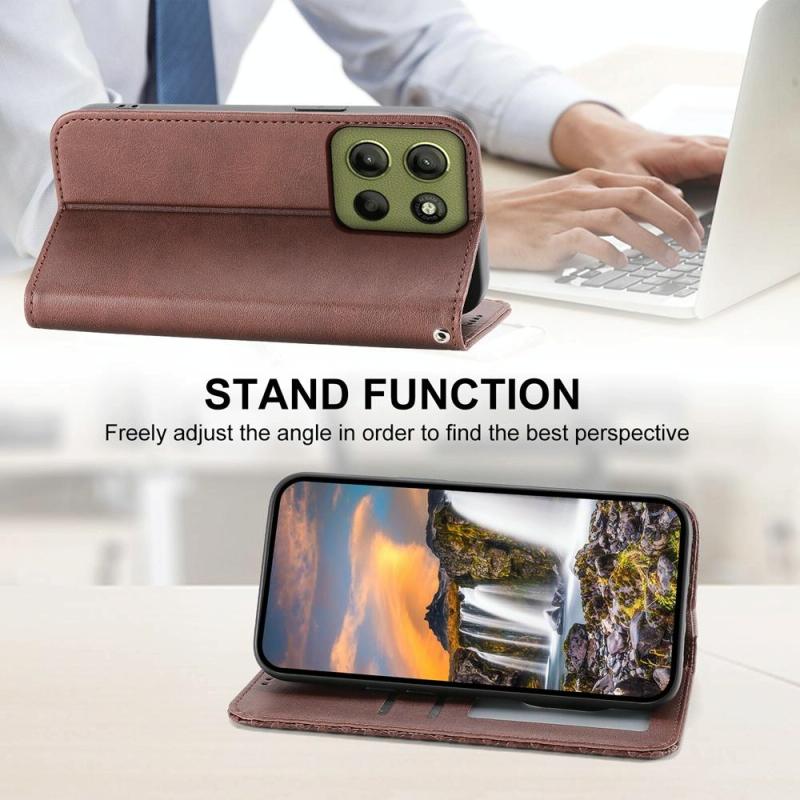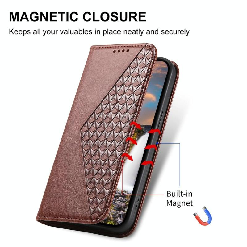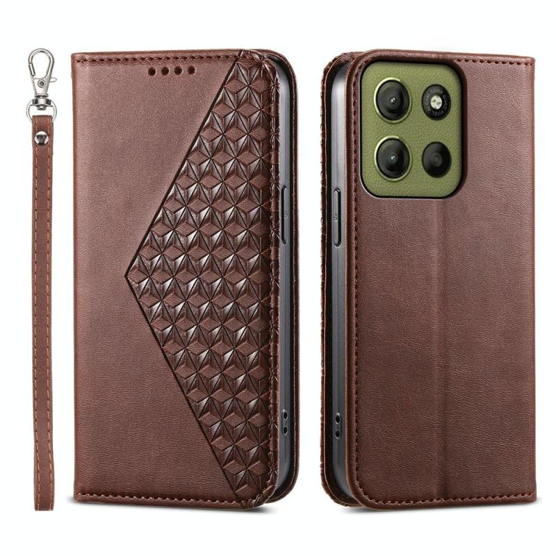 For Motorola Moto G15 Cubic Grid Calf Texture Magnetic Leather Phone Case(Brown)