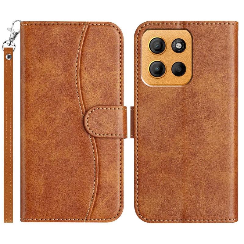 For Motorola Moto G15 Dual-Folded S-shape Leather Phone Case(Brown)