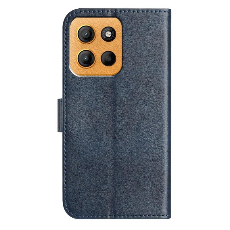 For Motorola Moto G15 Dual-Folded S-shape Leather Phone Case(Navy Blue)