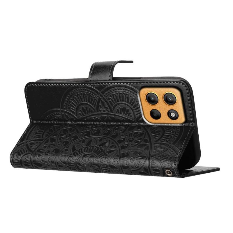 Θήκη τηλεφώνου δερμάτινη με ανάγλυφο λουλούδι για Motorola Moto G15 (Κόκκινη)