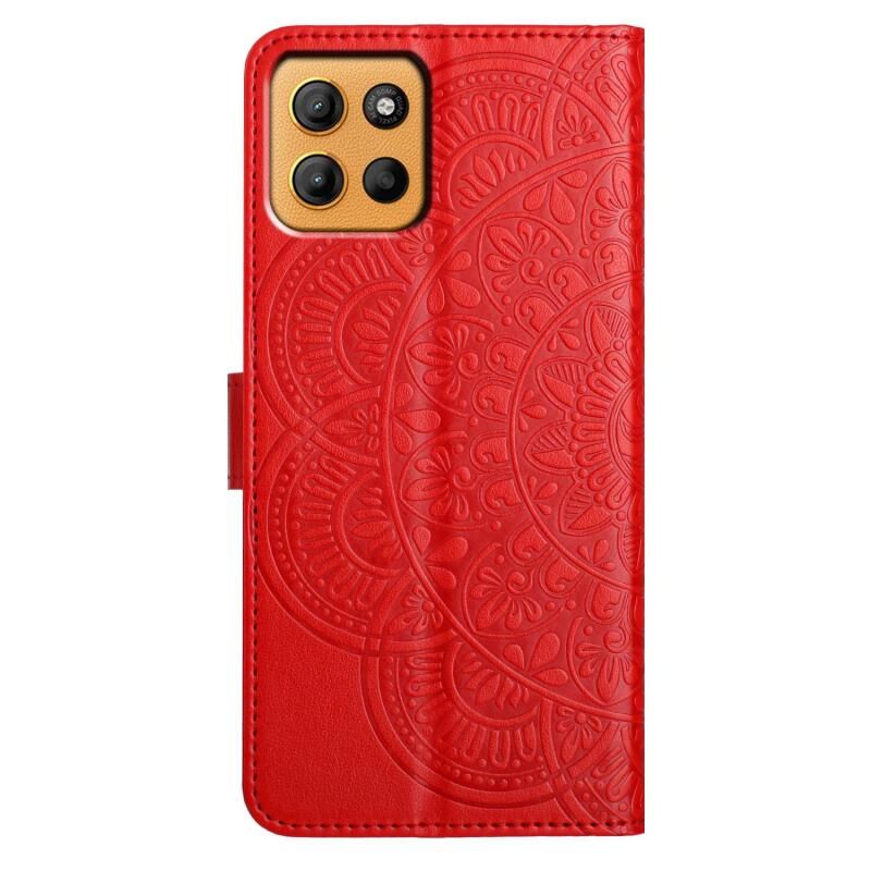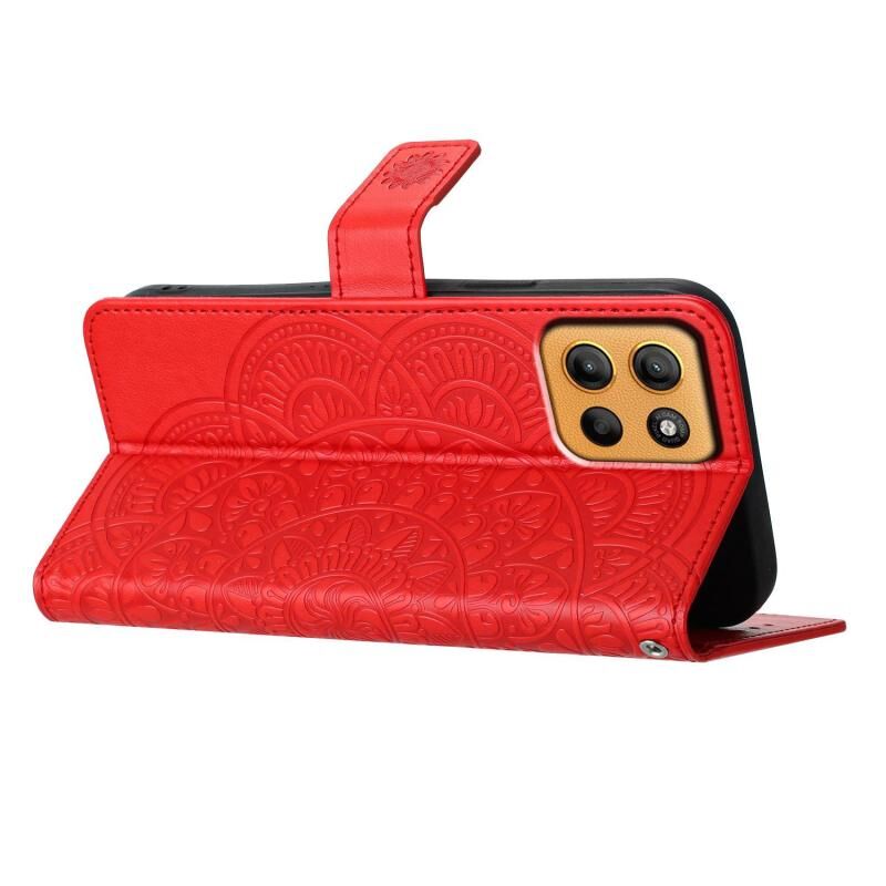 Θήκη τηλεφώνου δερμάτινη με ανάγλυφο λουλούδι για Motorola Moto G15 (Κόκκινη)