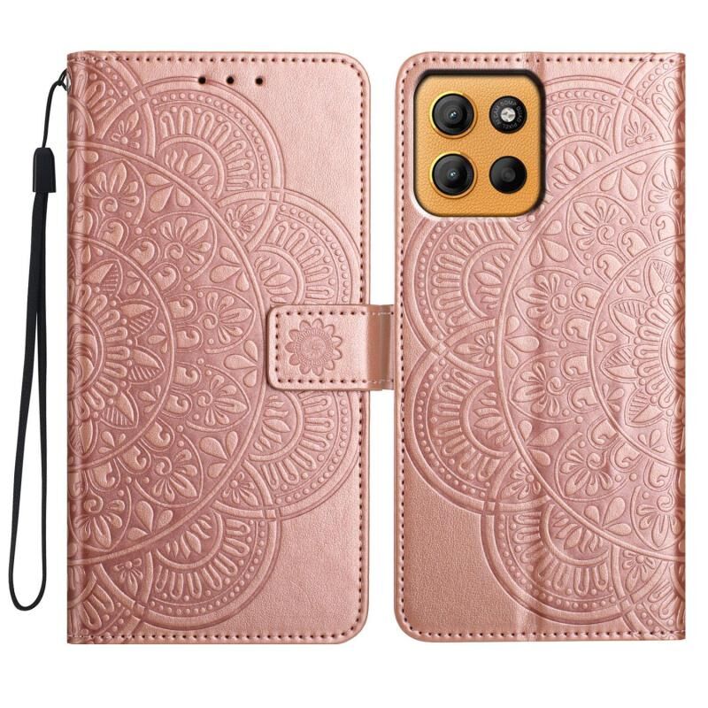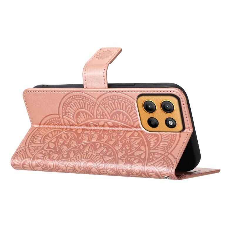 Θήκη τηλεφώνου δερμάτινη με ανάγλυφο λουλούδι για Motorola Moto G15 (Κόκκινη)