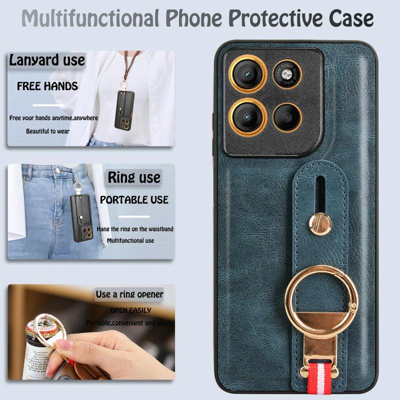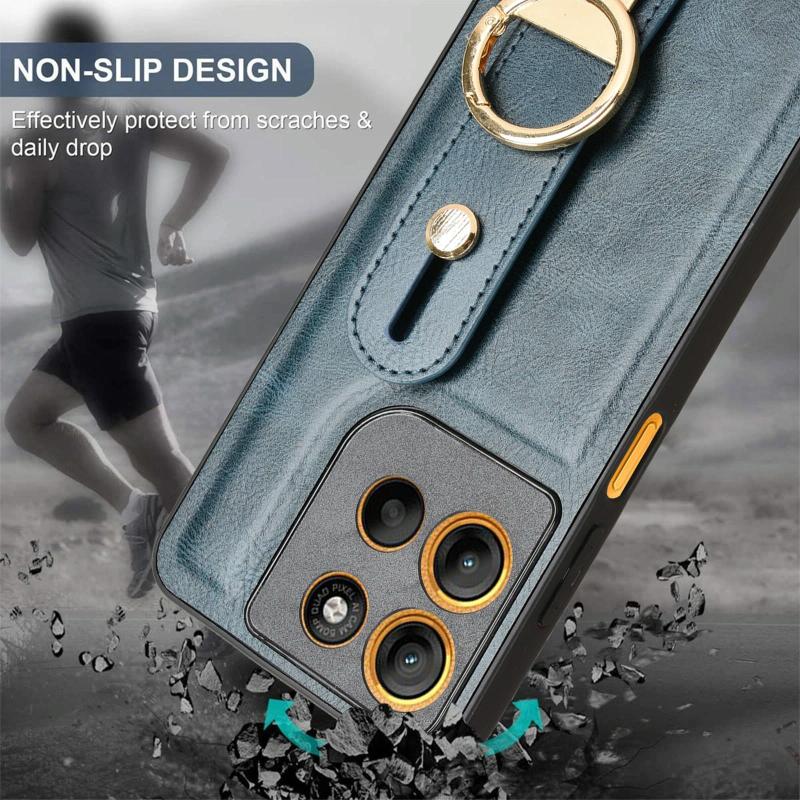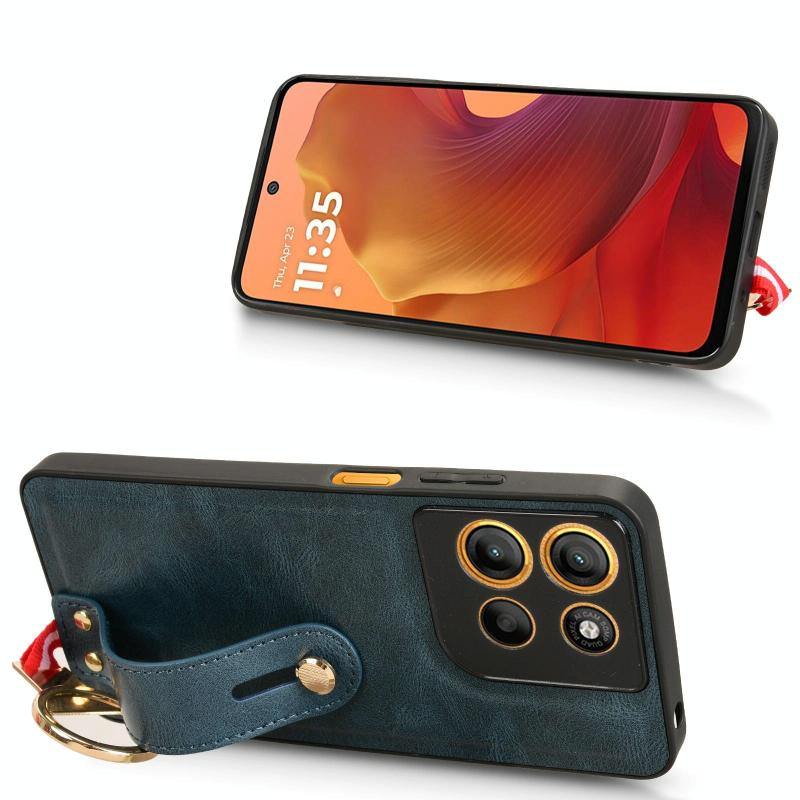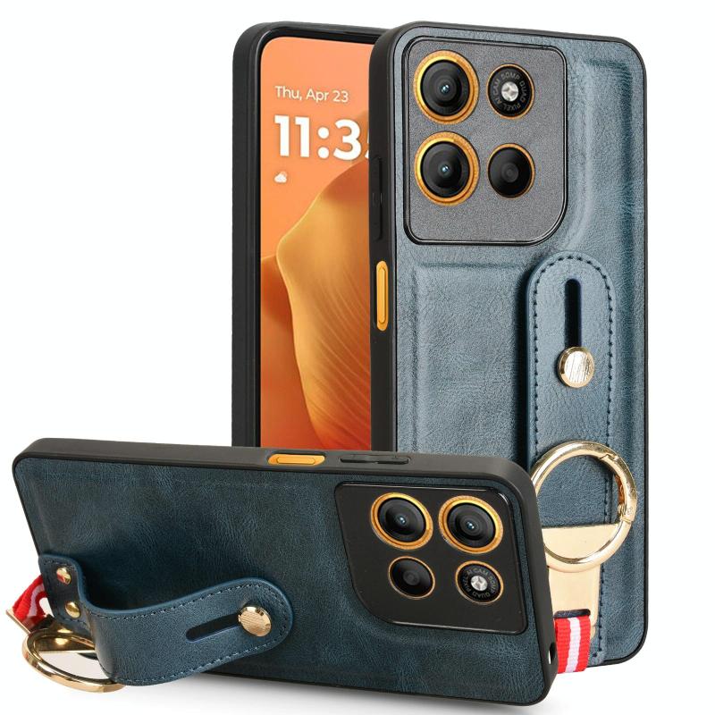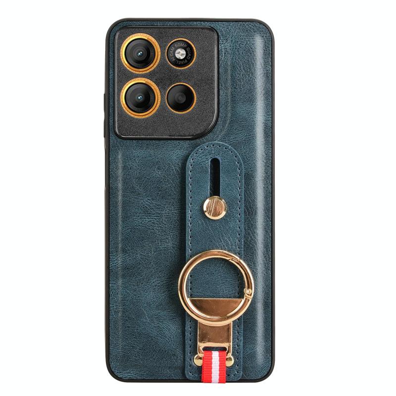 For Motorola Moto G15 / G15 Power 4G Wristband Leather Back Phone Case(Blue)